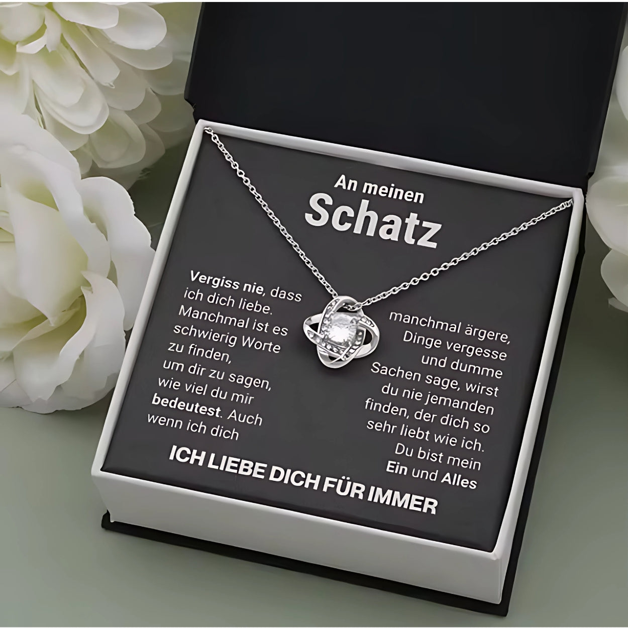 Überrasche deine Freundin zum Valentinstag mit einem Geschenk, das von Herzen kommt. ❤️ Unsere elegante Kette wird in einer edlen Holzbox mit warmem LED-Licht präsentiert – perfekt, um ihre Schönheit zu unterstreichen. ✨ Die liebevolle Botschaft auf der Karte in der Box zeigt, wie wichtig sie dir ist.